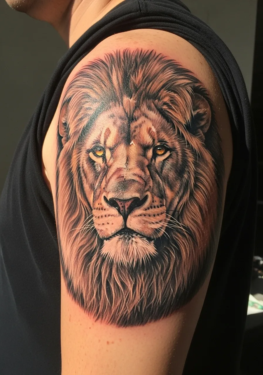 1. Majestic Lion Shoulder Tattoo